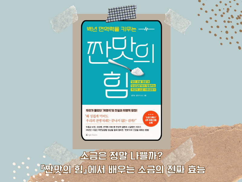 우리는 ‘짠맛’ 하면 먼저 ‘나트륨 과다’, ‘고혈압’, ‘성인병’ 같은 단어를 떠올립니다. 싱겁게 먹기 운동이 일상화된 요즘, 소금은 건강의 적으로 낙인찍혀 있죠. 하지만 과연 그게 전부일까요? 《백년 면역력을 키우는 짠맛의 힘》은 우리가 몰랐던 소금의 진짜 역할과 필요성, 그리고 잘못된 건강常識(상식)을 송두리째 뒤집는 도서입니다.