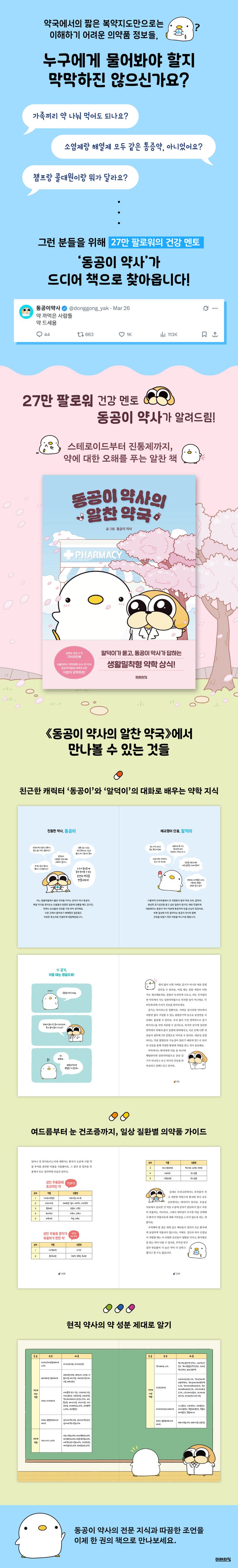 책의 저자는 약사이자 일러스트레이터인 ‘동공이 약사’다. 이 책은 그가 SNS에서 연재해 큰 호응을 얻었던 건강 정보를 재편집하고 새롭게 구성한 것이다. 의학 만화라고 하면 딱딱하고 정보 중심일 거라 생각하기 쉽지만, 이 책은 전혀 그렇지 않다.