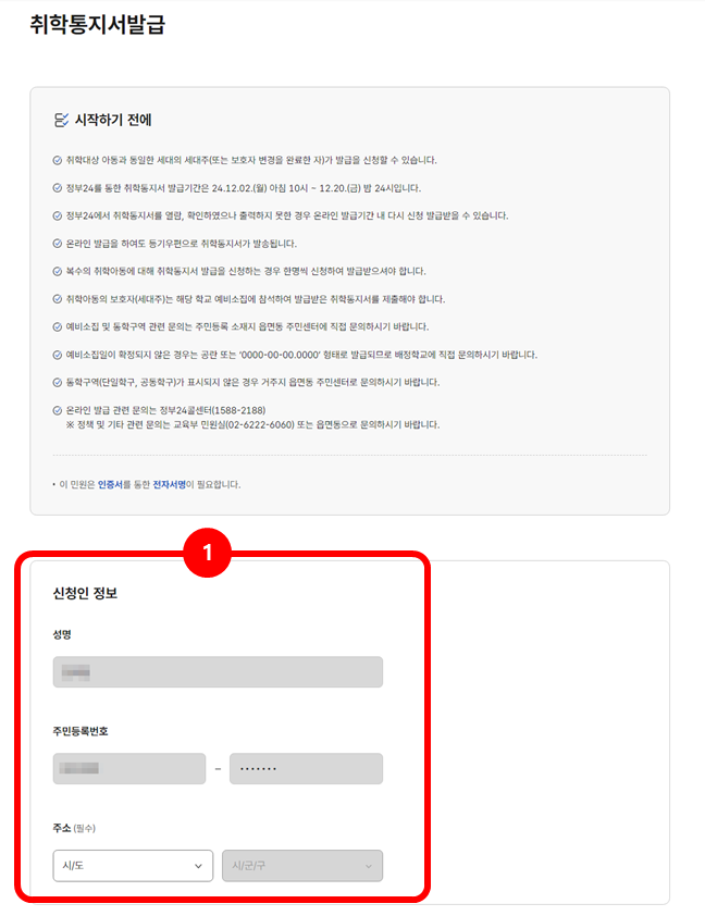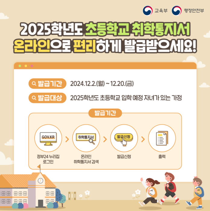 2025년도 초등학교 입학 취학통지서 발급 방법