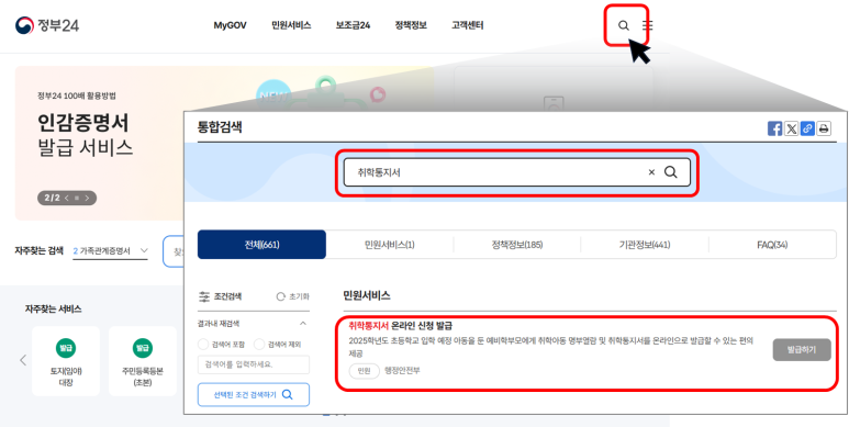 정부24에서 간편하게 취학통지서 발급받는 법