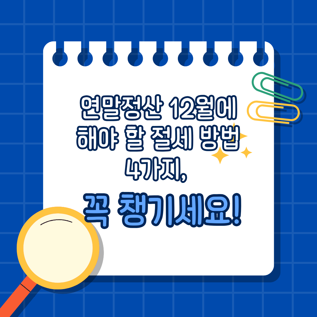 이 네 가지 방법은 쉽고 간단하면서도 큰 절세 효과를 가져올 수 있으니, 연말정산 전 꼭 체크하고 실천해 보세요!