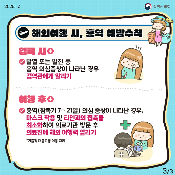 홍역은 예방이 가능한 질병으로, MMR 백신 접종과 적절한 위생 관리를 통해 감염을 예방할 수 있습니다. 건강한 여행을 위해 이 지침을 철저히 지키고, 추가적인 정보가 필요하면 언제든지 질문해 주세요.