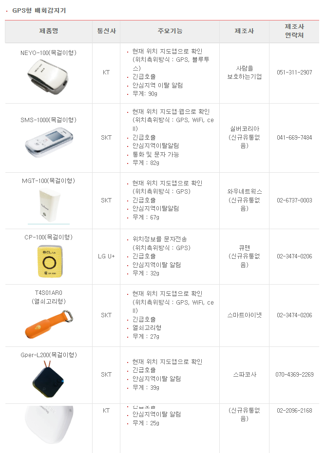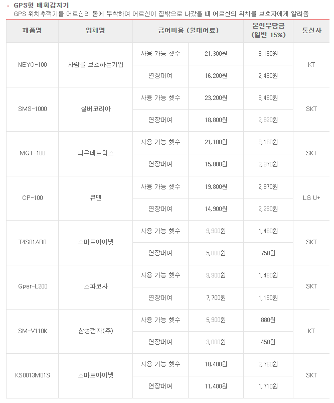 배회감지기는 대여 제품으로 제공되며, GPS형과 매트형 두 가지로 구분됩니다.